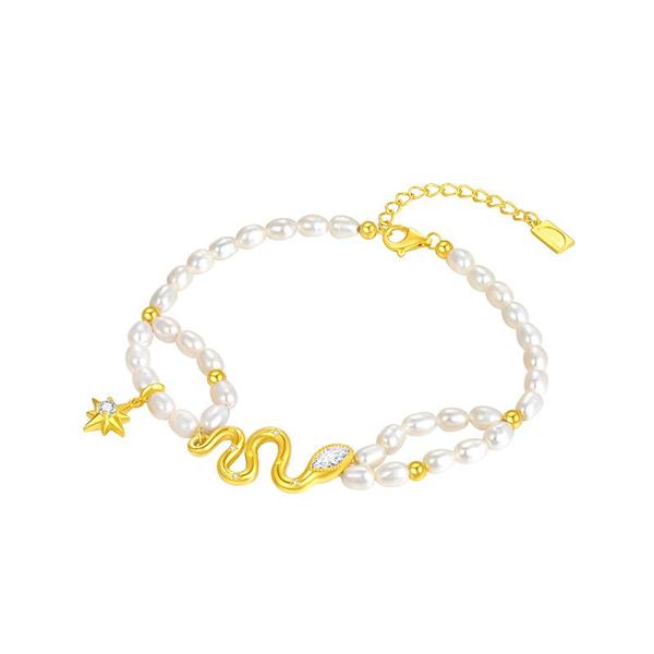周大生DC流光灵蛇手链S925纯银淡水珍珠轻奢高级感气质礼物送女友