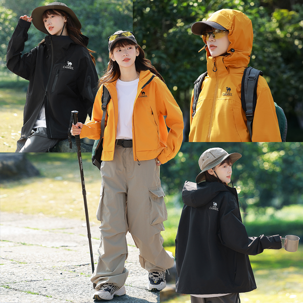 骆驼女装短款黄色冲锋衣外套2025春新款